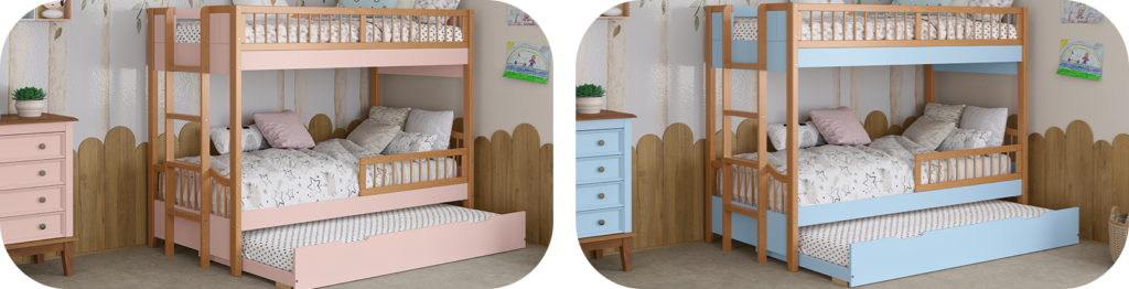 Todos os modelos possuem cantos arredondados e estão disponíveis em diversos tamanhos, cores e estilos, para acompanhar o crescimento da criança sem abrir mão do charme. São peças que crescem junto com a infância e encantam o ambiente.